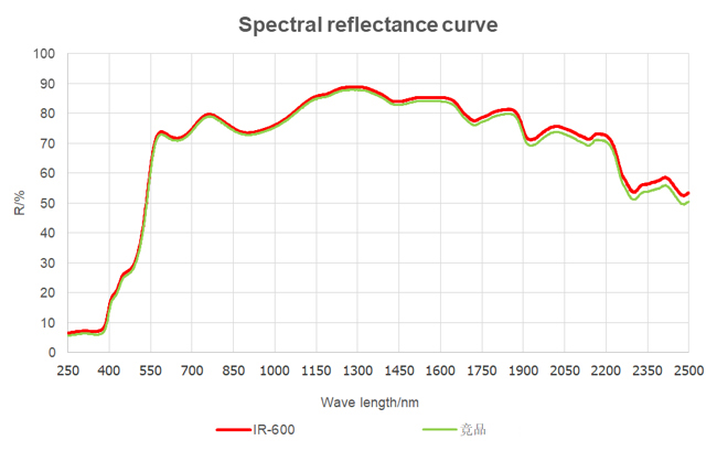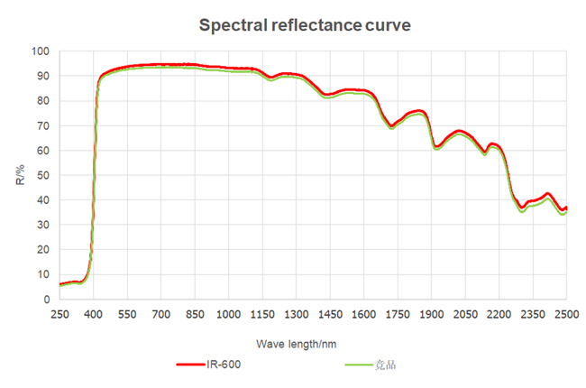 IR-600是能夠反射近紅外線的新型二氧化鈦材料。由于合理的粒度及其分布控制,保證了在白色或淺色涂料及塑料體系中的應用。IR-600是專門為中高明度配方體系設計,可以為涂層提供更高太陽光反射比,降低物體溫度,從而達到節能降耗的目的。同時IR-600采用致密硅鋁包膜,能夠為涂層提供絕佳的耐候性。